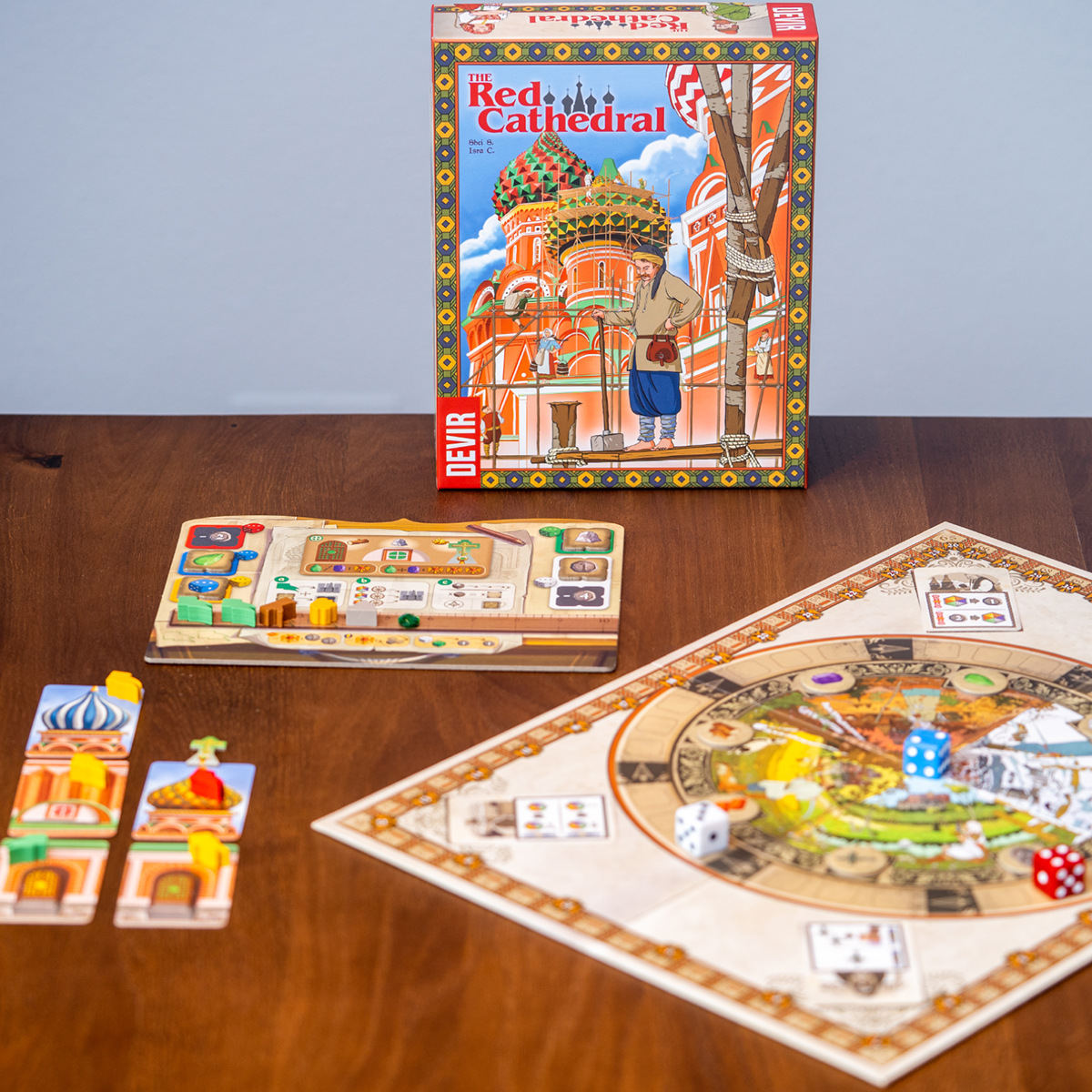 Sheila Santos e Israel Cendrero forman el dúo de diseñadores de juegos conocido como Llama Dice. Hasta la fecha han sacado varios títulos con diferentes editoriales españolas (1987 Channel Tunnel, Mondrian, Smoothies), y The Red Cathedral es el primer juego que han publicado con Devir. Pedro Soto (Holmes, Sherlock & Mycroft, Papua) y Chema Román (El mundo de Águila Roja) se encargaron de los elementos gráficos del juego con un gran homenaje a Ivan Bilibin, un icónico artista ruso de principios del siglo XX. A pesar de ser de un período muy posterior, su huella es muy reconocible en el juego.